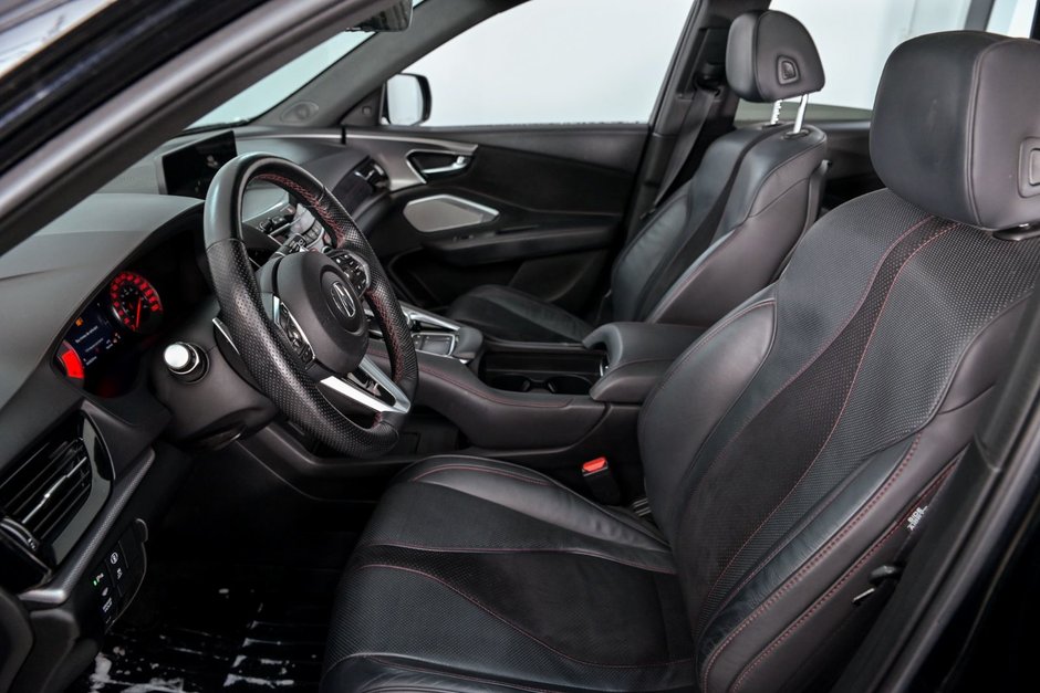 ACURA RDX 2023 SH-AWD GROUPE A-SPEC! Sièges en cuir noir, sièges avant chauffants et refroidissants, réglages électriques, sièges mémoire, système de suivi de voie, régulateur de vitesse adaptatif, détecteur d'angle morts, démarrage à bouton poussoir, toit ouvrant panoramique, hayon électrique, touch pad, Navigation, caméra de recul, caméra vue aérienne Bluetooth, Apple Carplay, Android Auto, système audio de haute performance ELS Studio, phares à DEL et bien plus! AUCUN DOSSIER DE DOMMAGES RAPPORTÉS AU CARFAX!